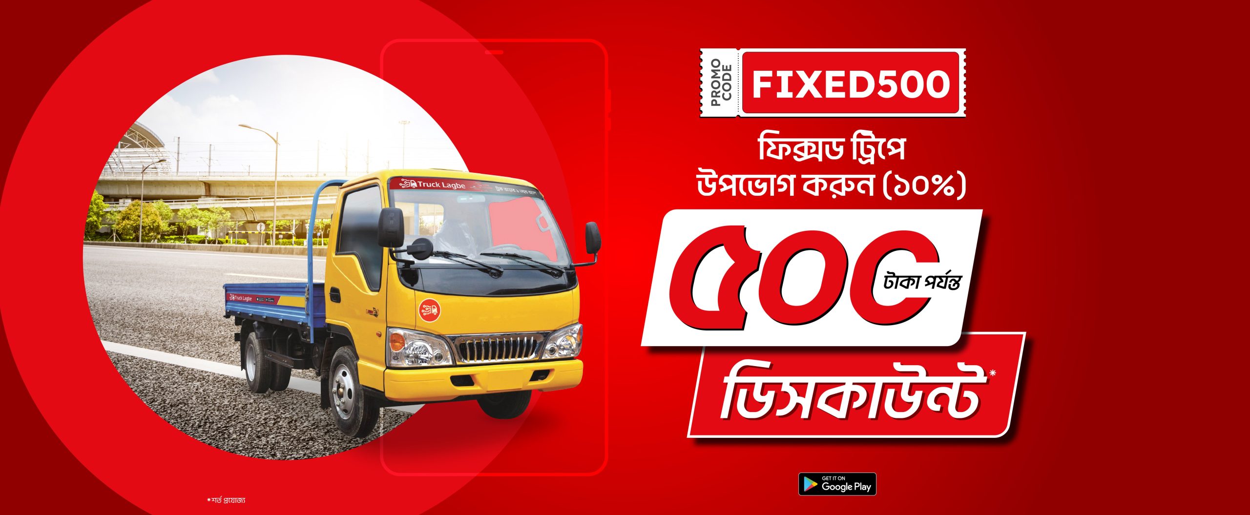 প্রোমো কোড: FIXED500 ব্যবহার করে ফিক্সড ট্রিপে উপভোগ করুন ১০% (সর্বোচ্চ ৫০০ টাকা) ছাড়!