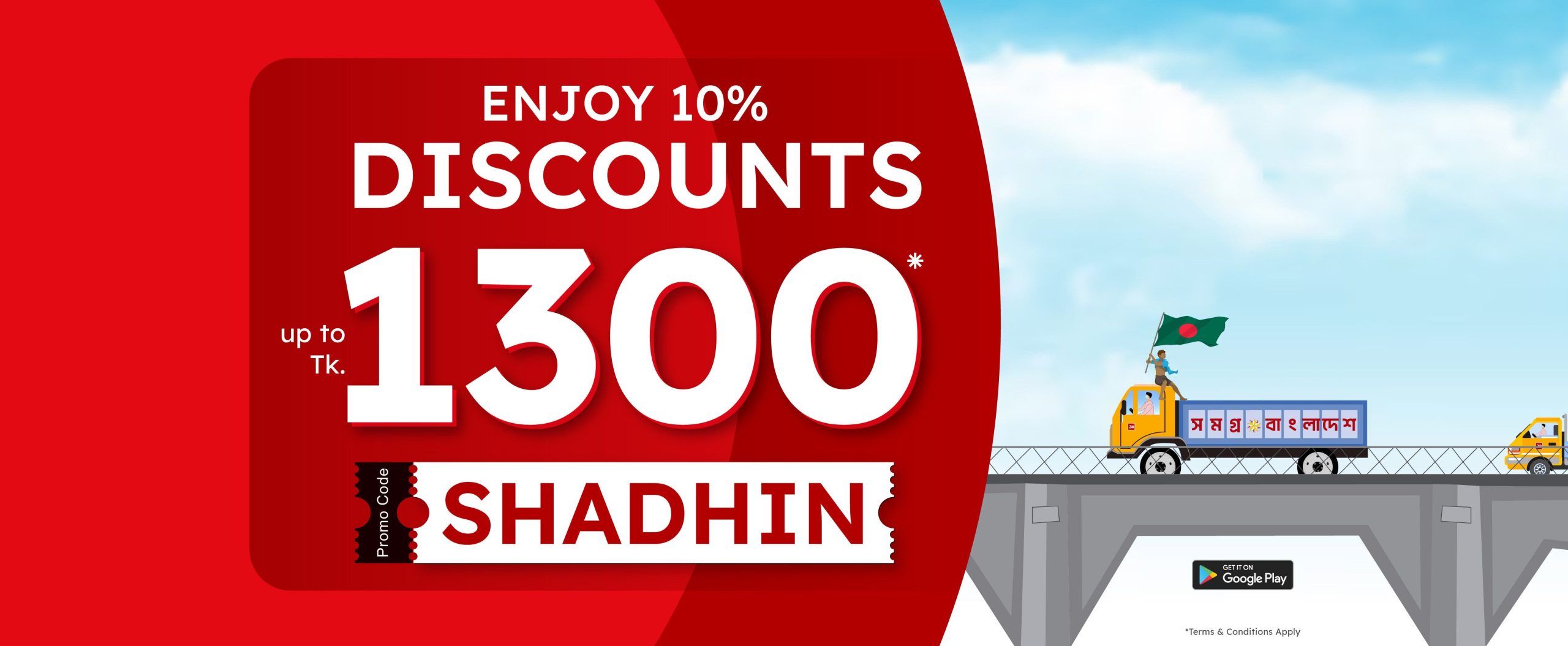 ENJOY DISCOUNTS OF 10% (UP TO TK.1300) BY USING PROMO CODE: SHADHIN