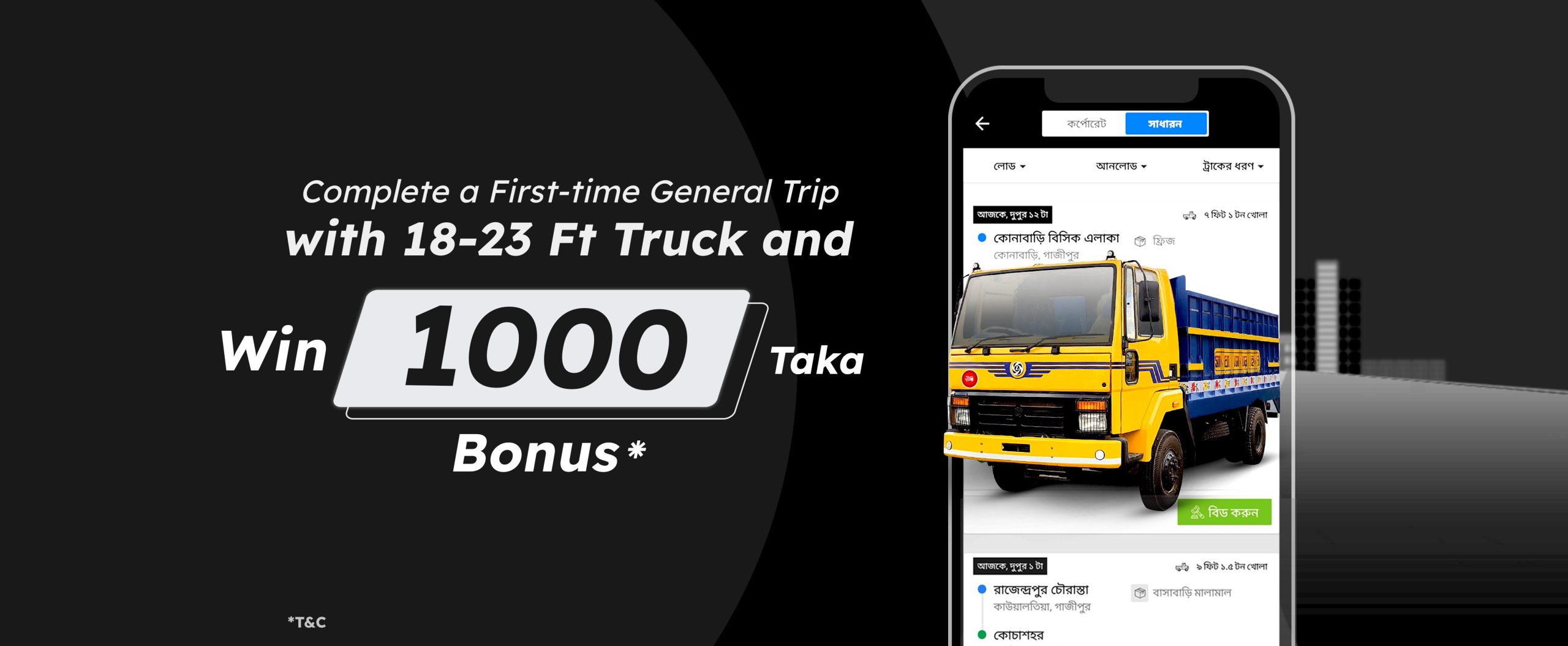 Get a 1000 Tk bonus by completing your first trip with an 18-23 feet truck!
