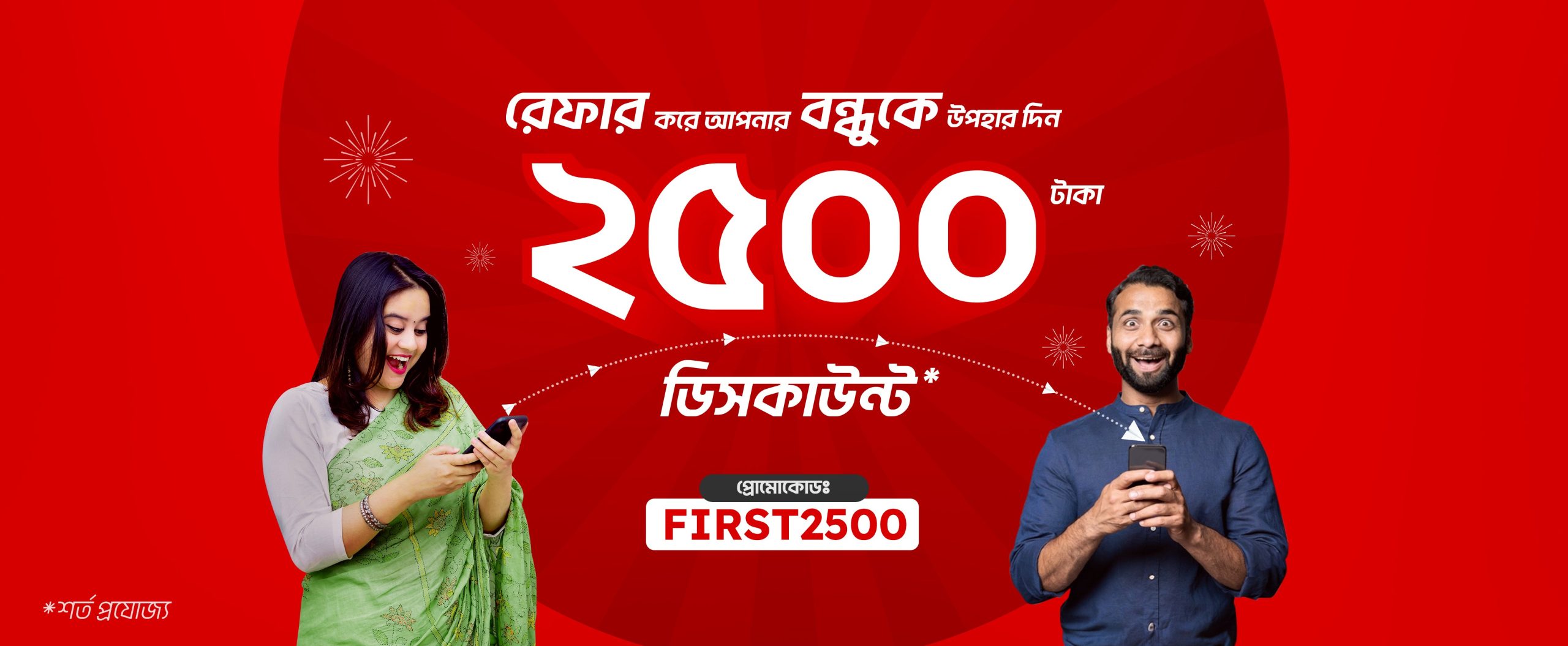 রেফার করে আপনার বন্ধুকে উপহার দিন ২৫০০ টাকা ডিসকাউন্ট