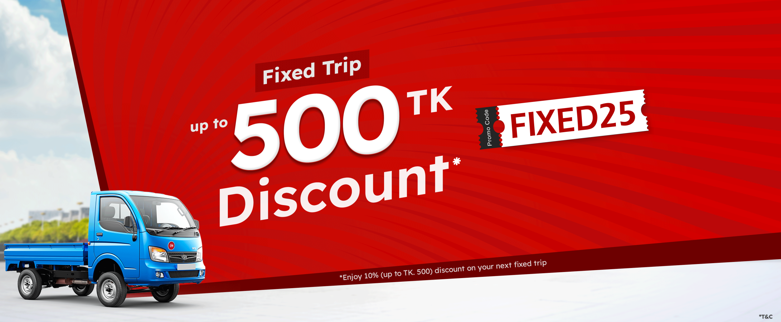 Use Promo Code: FIXED25 to Enjoy a 10% (UP TO TK.500) Discount on Fixed Trips!