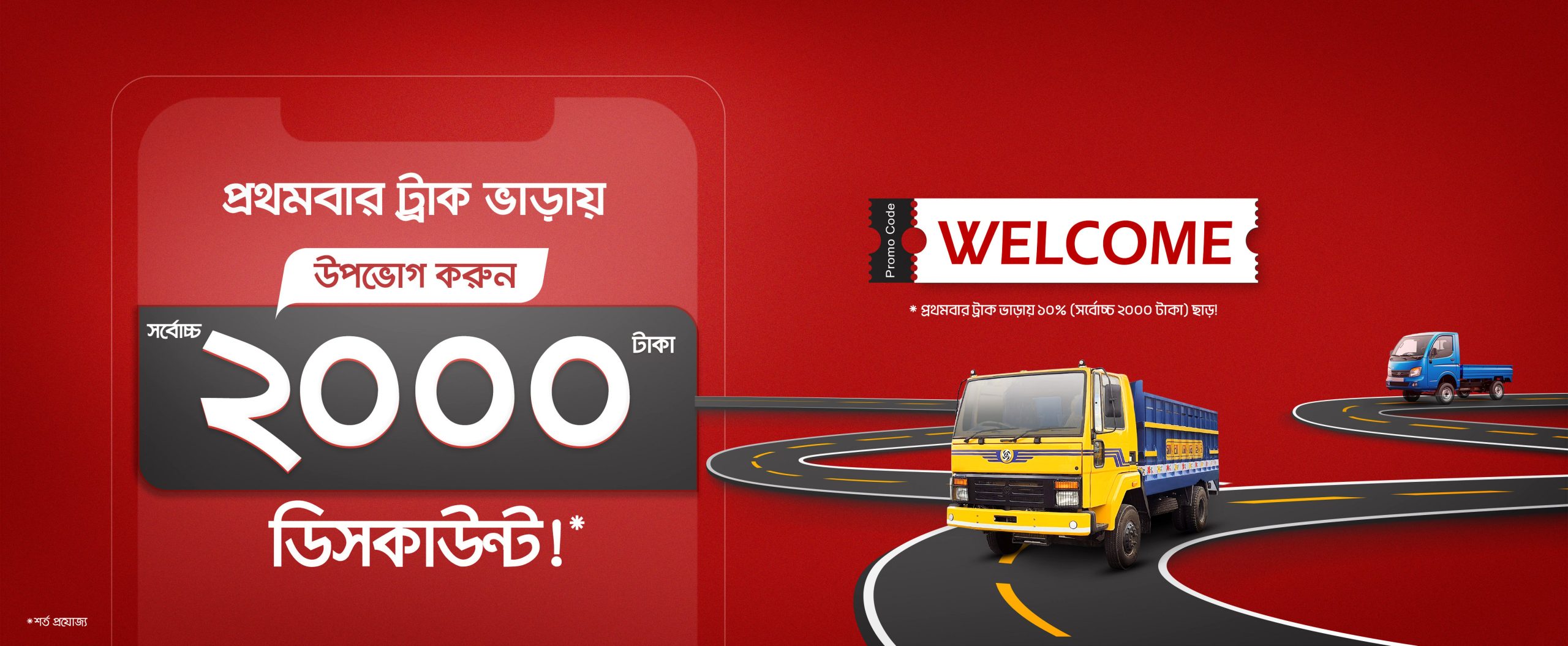 প্রথমবার ট্রাক ভাড়ায় সর্বোচ্চ ২০০০ টাকা ছাড়। প্রোমো কোড: WELCOME