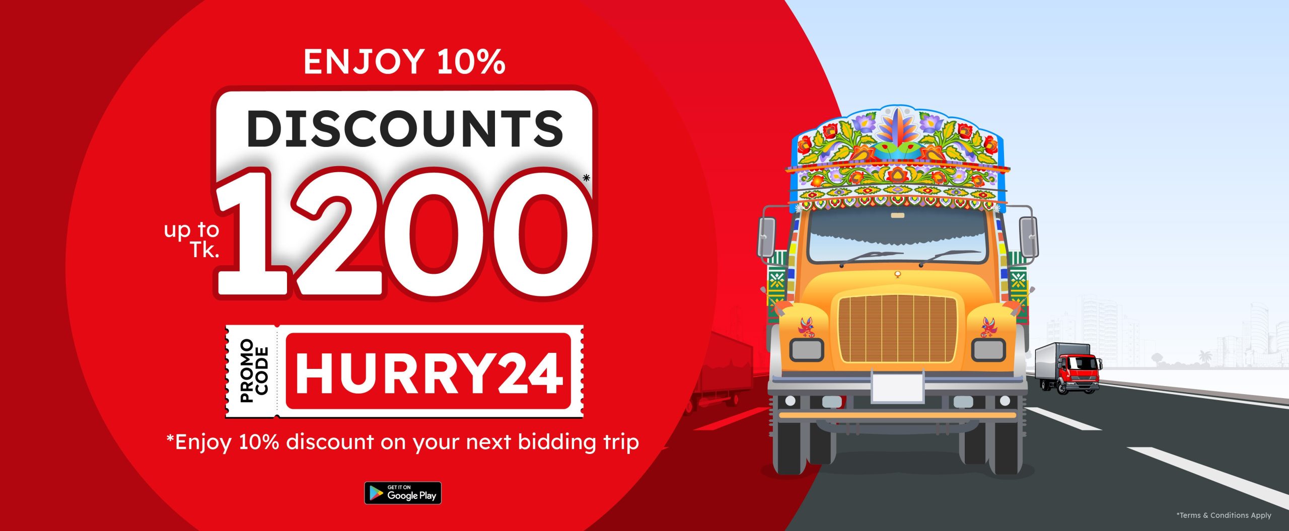 প্রোমো কোড: HURRY24 ব্যবহারে বিডিং ট্রিপে উপভোগ করুন ১০% (সর্বোচ্চ ১২০০ টাকা) ডিসকাউন্ট