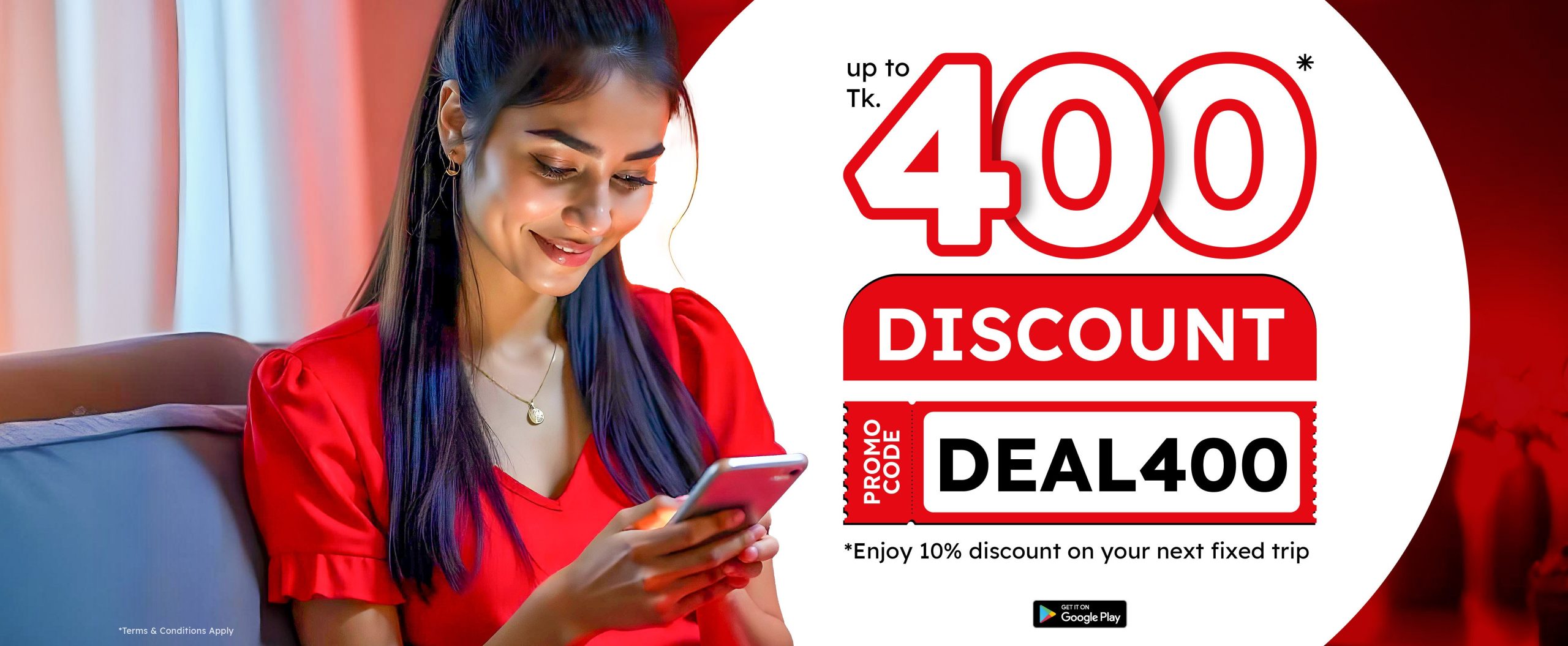 Use Promo Code: DEAL400 to Enjoy a 10% (UP TO TK.400) Discount on Fixed Trips!